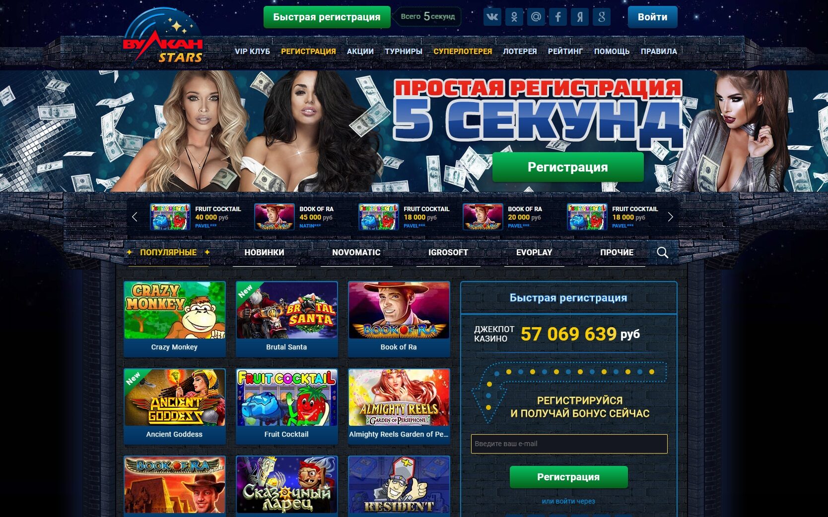 Бонусы за регистрацию на официальном сайте Вулкан Старс